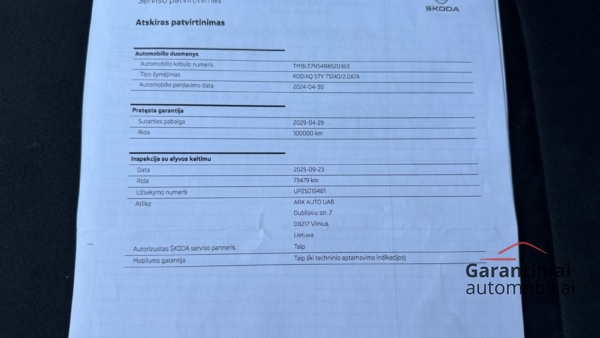 Galioja gamyklinė garantija iki 2029.04 m. arba 100.000 km