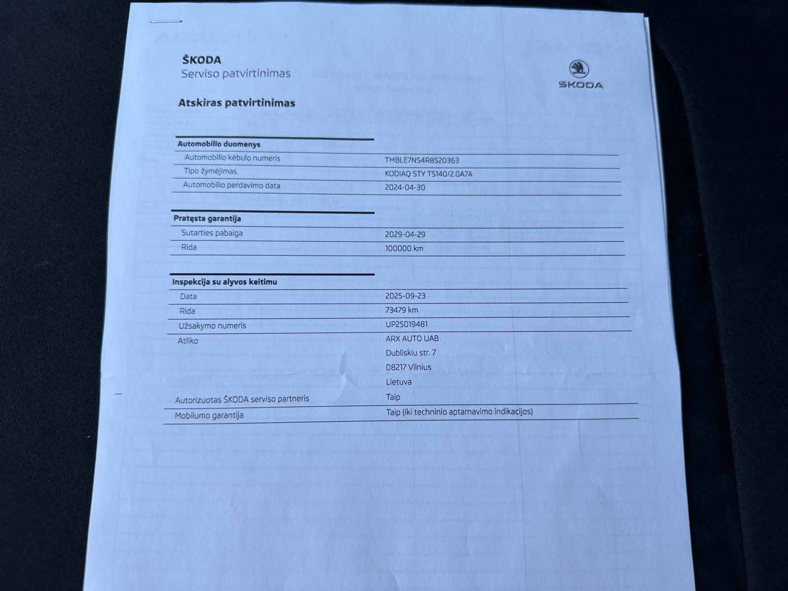 Automobilis pirktas Lietuvoje. Tinkamai ir laiku aptarnautas Škoda servise.