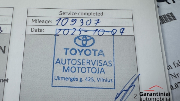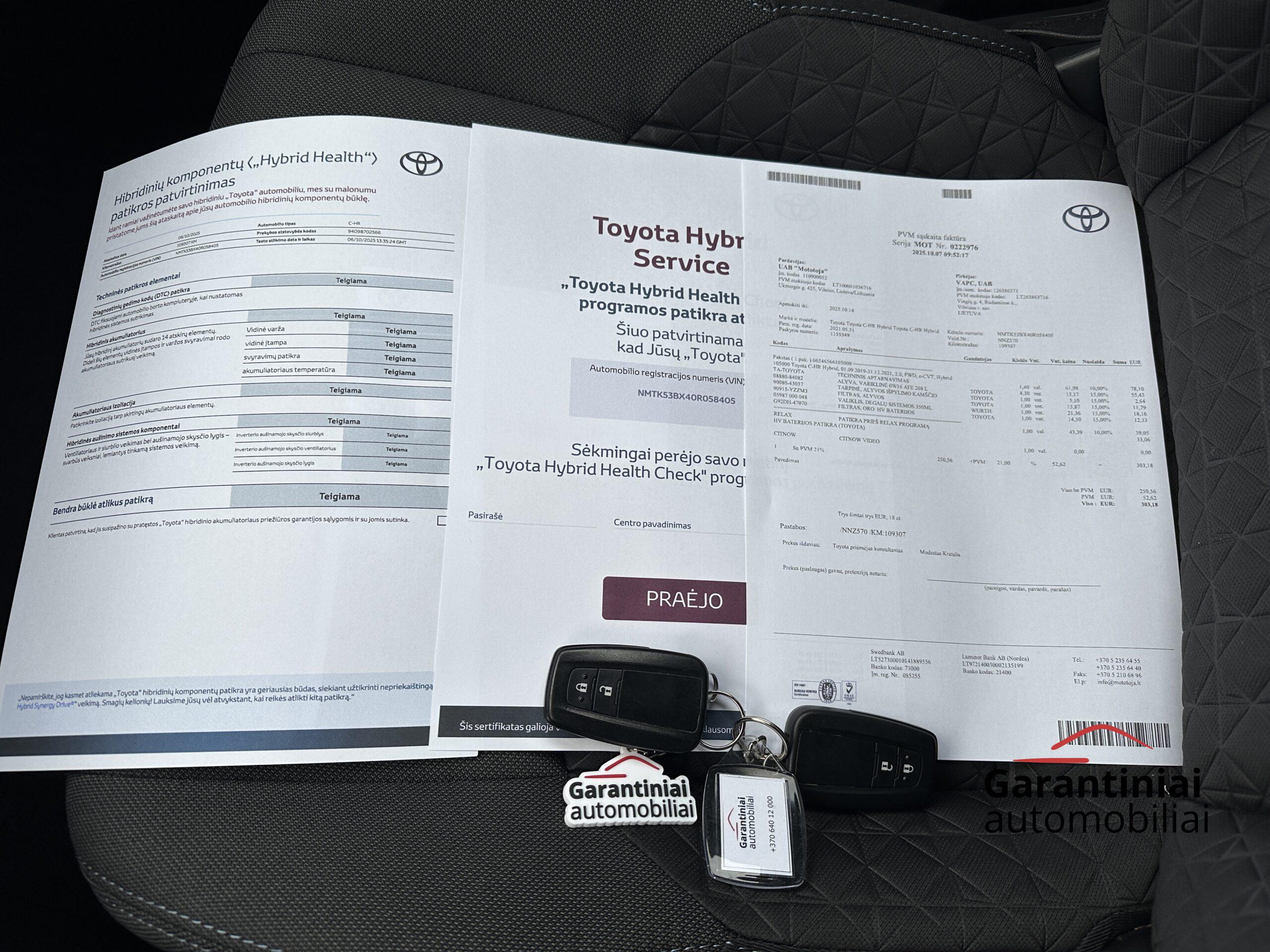 Automobilis pirktas ir prižiūrėtas Belgijoje. Atliktas techninis aptarnavimas su hibridinės sistemos patikra Toyota atstovybėje. Pratęsta Toyota Relax garantija iki 2031 m. arba 185.000 km (10.13)
