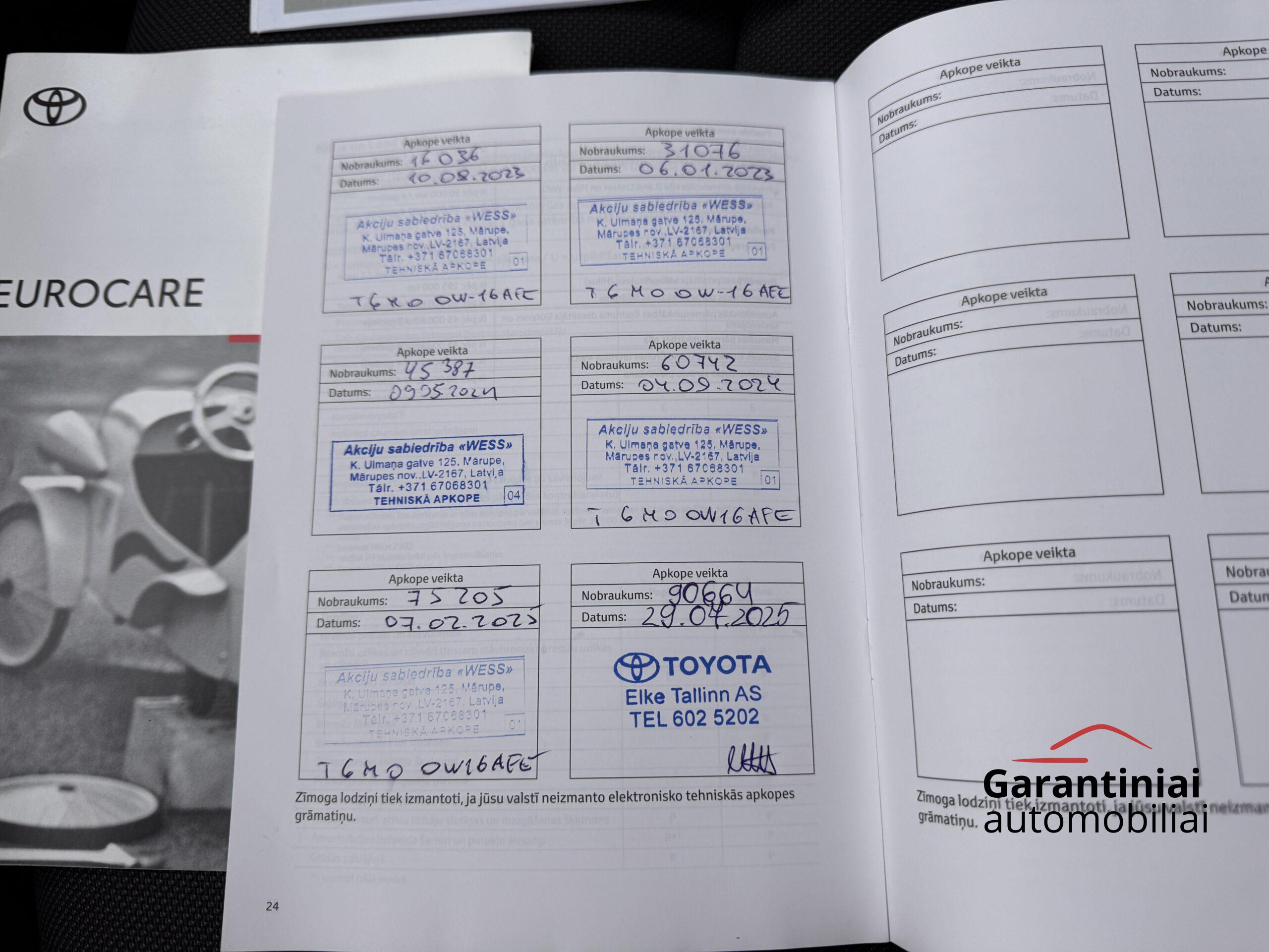 Automobilis pirktas ir prižiūrėtas Latvijoje. Visi aptarnavimai buvo atliekami tik Toyota servise.