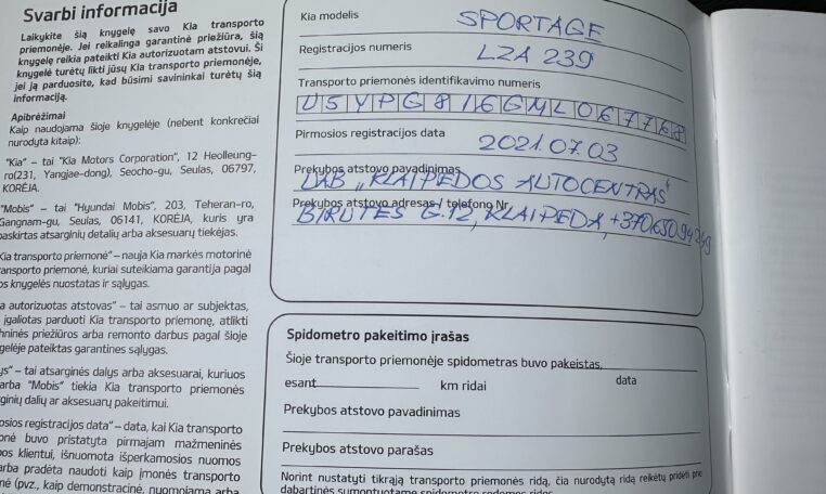 Automobilis pirktas ir prižiūrėtas Lietuvoje. Tinkamai aptarnautas Kia servise.