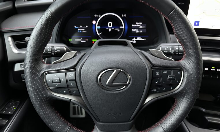 F-Sport komplektacija – šildomas vairas, šildomos ir ventiliuojamos priekinės sėdynės, odinis salonas, el. valdomas bagažinės dangtis, dinaminė kruizo kontrolė su radaru (veikia bet kokiu greičiu), kelio ženklų atpažinimo sistema, GPS navigacija, skaitmeninis prietaisų skydelis, automatiškai įsijungiantys žibintai, tolimųjų žibintų asistentas, kritulių daviklis, beraktė sistema, el. valdoma vairo padėtis, Apple CarPlay/ Android Auto, susidūrimo prevencijos sistema, aklos zonos indikatoriai, belaidis telefono įkroviklis, HUD, automatiškai užsilenkiantys veidrodėliai, el. valdoma vairuotojo sėdynė su atmintimi, 360 laispnių vaizdo kameros, Mark&Levinson audio aparatūra.