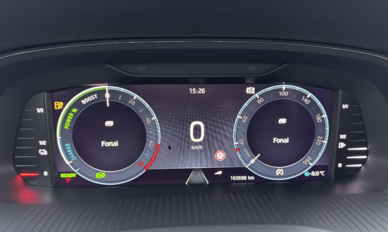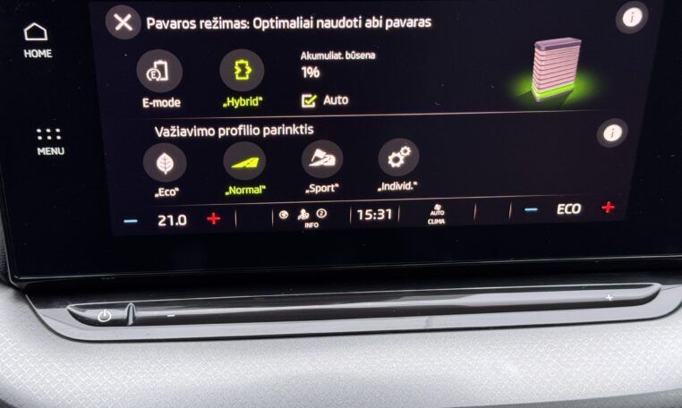 Plug-in įkraunamas hibridas. Galimybe važiuoti vien elektra iki 50 km.