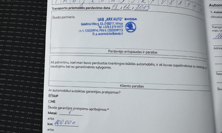 Galiojanti gamyklinė garantija iki 2028-12 arba 100.000 km