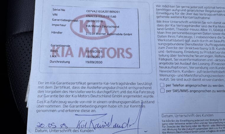 Tinkamai ir laiku aptarnautas KIA servise. Pilna serviso istorija. Suteikiama 12 mėnesių arba 10.000 km garantija varikliui ir pavarų dėžei su galimybe pratęsti.