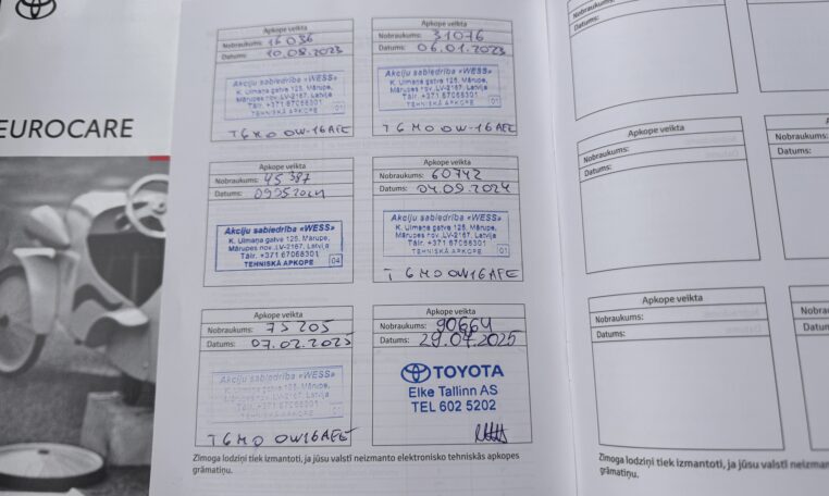 Automobilis pirktas ir prižiūrėtas Latvijoje. Visi aptarnavimai buvo atliekami tik Toyota servise.