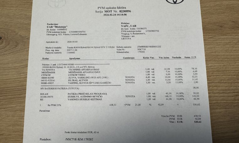 Galioja gamyklinė Toyota Relax garantija iki 2027 m. arba 185.000 km18.250 Eur