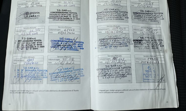 Automobilis pirktas ir prižiūrėtas Italijoje. Tinkamai ir laiku aptarnautas Toyota servise. Ką tik atliktas paskutinis techninis aptarnavimas ir pratęsta Toyota Relax garantija. Sekantis aptarnavimas po 15.000 km arba 1 metų,