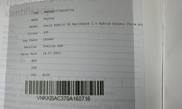 PVM neišskiriamasToyota Yaris 1.5 Hybrid Dynamic Force Active 2021 m. su galiojančia gamykline garantija.