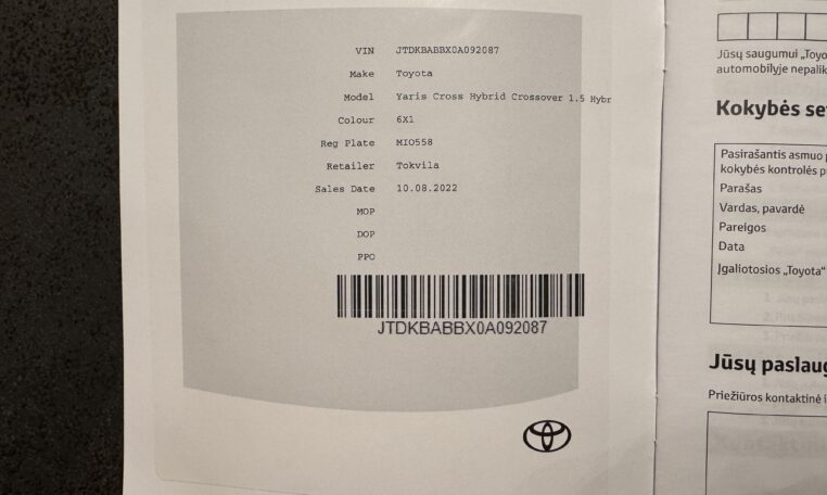 Toyota Yaris Cross 1.5 Hybrid Active 2022 m. su galiojančia gamykline garantija.